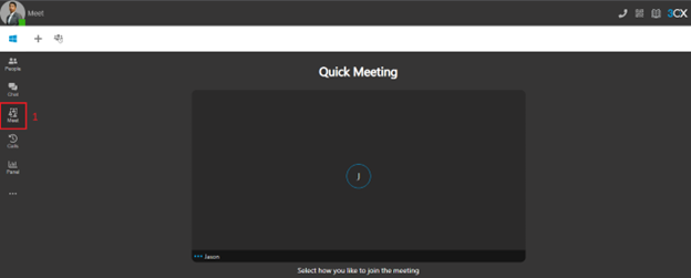 - 1. Quick Meeting, Login webclient https://yourdomain.3cx.asia/webclient menggunakan credential extension, setelah itu klik menu Meet maka otomatis akan mengarah ke Quick Meeting.