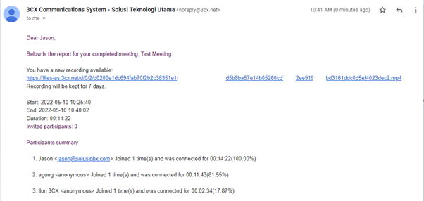 - 12. Link untuk play/mendownload hasil recording akan dikirimkan ke email host, untuk recordingnya akan di keep selama 7 hari.