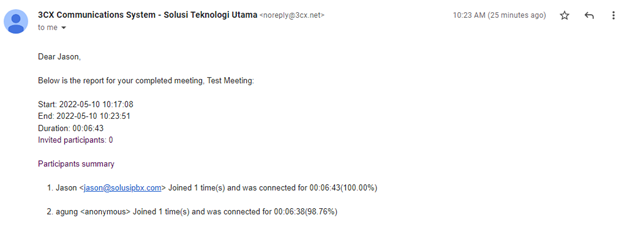 - 13. Report Meeting akan terkirim ke email Host setelah End Meeting.