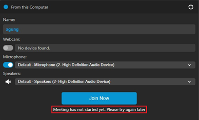 Note : untuk web meeting, host harus masuk terlebih dahulu kedalam room meeting agar partisipan bisa join kedalam room meeting